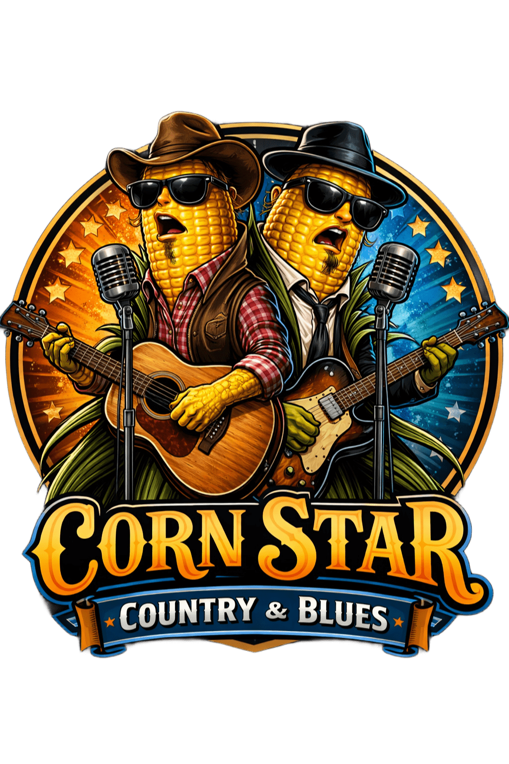 Il mais più cool del Mississippi. Jacket nera, occhiali scuri, chitarra elettrica e l'anima del blues nel cornetto. Una grafica che urla musica.